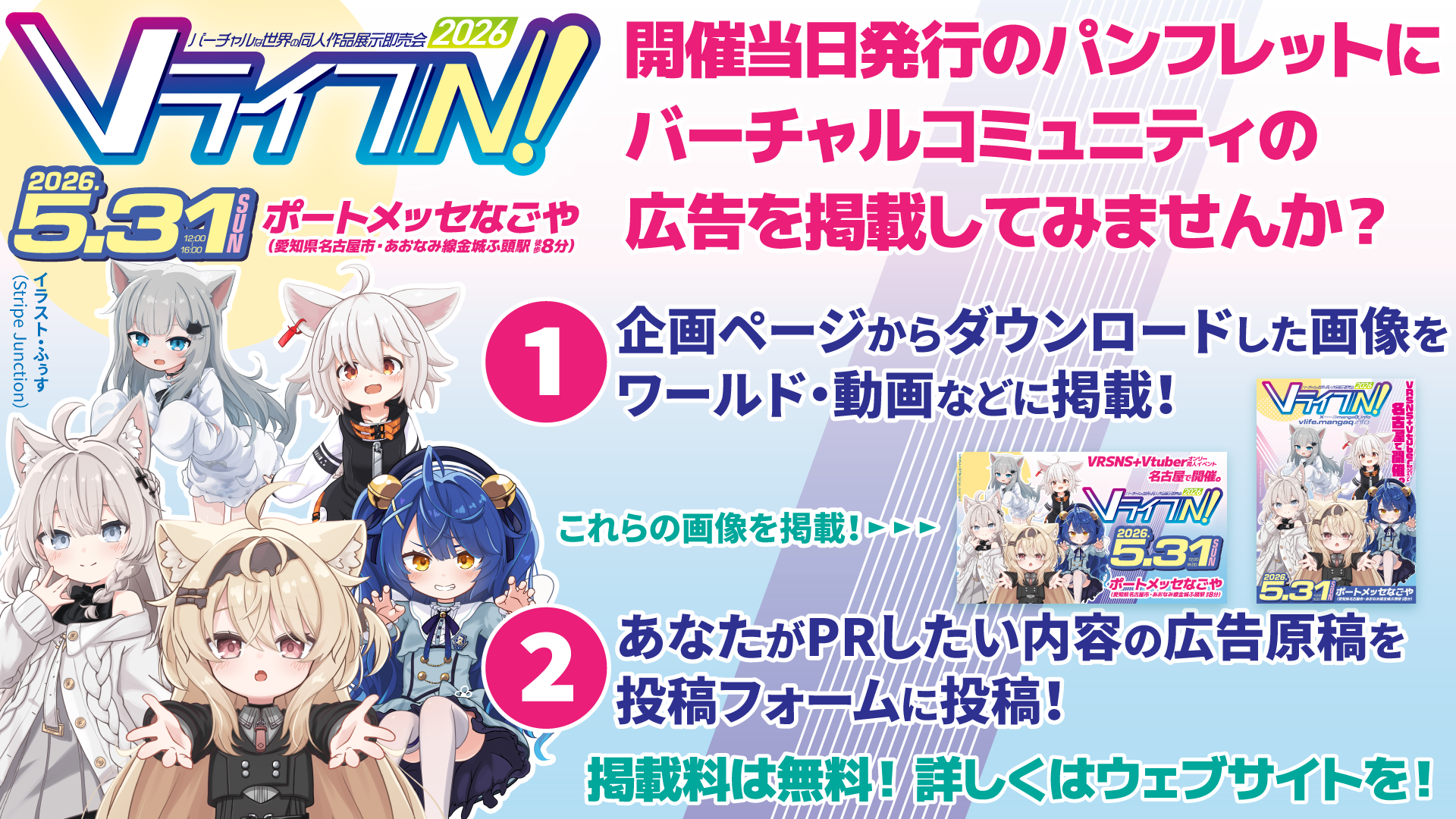 来る2026年5月31日(日)に開催の、バーチャルな世界の同人作品展示即売会「Vライフ/N! 2026」(愛知県名古屋市・ポートメッセなごや)では、開催当日に独自のパンフレットを配布予定です。